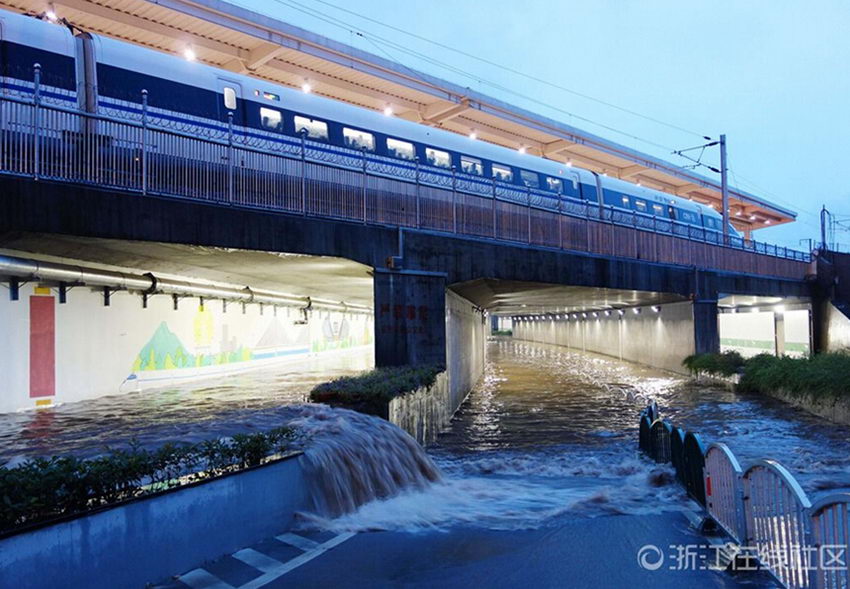 A rainstorm on the night of July 21 leaves the tunnel under the railway submerged. (Photo/ www.zjol.com.cn)