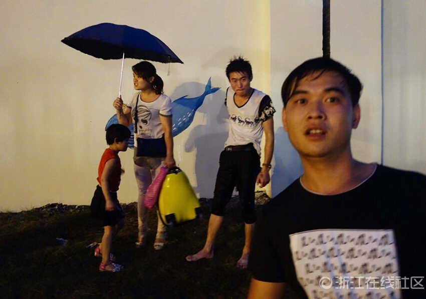 The family of Mr. Peng swim to the railway station. (Photo/ www.zjol.com.cn)