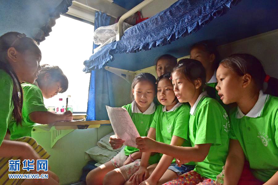 On July 22, Children representatives are rehearsing the program that they prepare for their parents in the carriage.