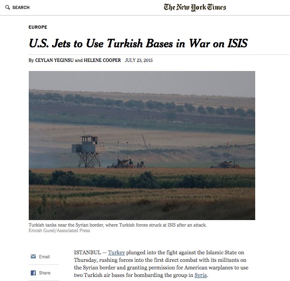 Conflict broke out on the Syrian-Turkish border yesterday, shortly after a suicide bomber with suspected ties to ISIS claimed 30 lives. Consequently, Turkey is now officially involved in the war against ISIS, providing a key advantage for the USA. The US can now use a valuable air base to engage with ISIS from Turkey, right next door to Syria.