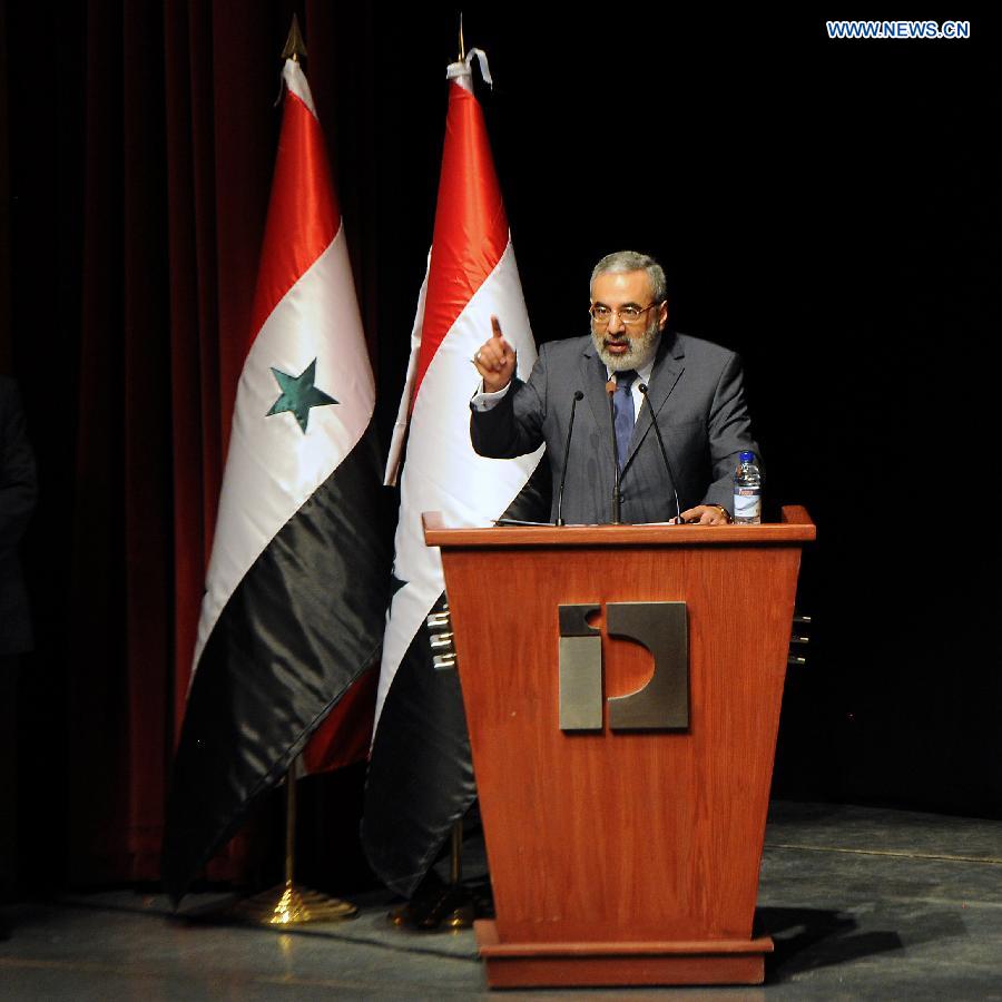 Syrian Information Minister Omran al-Zohbi speaks during the International Media Conference Against Terrorism in Damascus, capital of Syria, on July 24, 2015. The two-day International Media Conference Against Terrorism kicked off in Damascus on Friday. (Xinhua/Zhang Naijie)