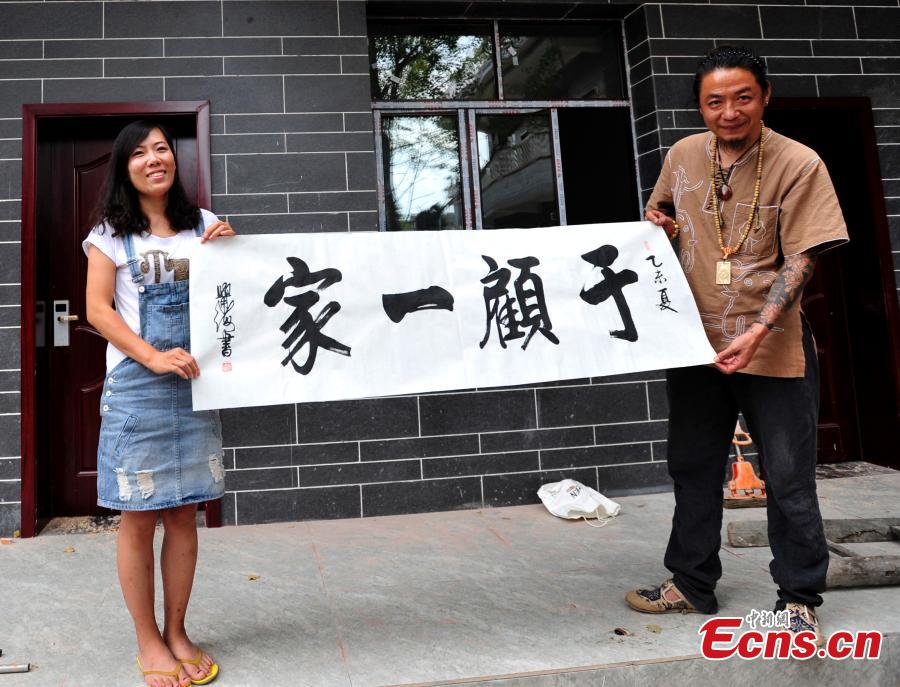 Gu Shaoqiang and her husband show off a calligraphy work given by their friends in Jiezi Old Town in Chongzhou city, Southwest China’s Sichuan province. Gu caused an online sensation and to some extent has become a heroine to an adventure-hungry generation of working Chinese with her resignation letter of 10 Chinese characters - "The world is big and I want to see it”. She resigned from a middle school in April, and the latest development is that she didn’t actually go to see the world. Instead, she found unexpected love and decided to settle down with her husband in the old town. (Photo: China News Service/An Yuan)