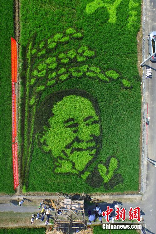 The “2015 Rice Field Cartoon Festival” is held in the testing site of “Yuan Longping super rice” Kangyuan ecological farm in Hangzhou, east China’s Zhejiang province on July 26, 2015. The agricultural science research team of Zhejiang University created cartoon works with the world’s first four-color rice in the field, which have attracted many tourists. (CNS/Li Zhong)
