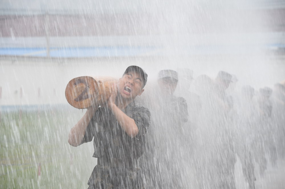 Soldiers of the intercontinental strategic missile brigade of the SAC conduct drill in pouring rains. (Photo/Xinhua)
