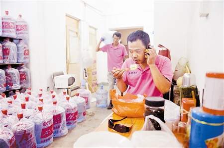 Li Xujun comes back to the water station and has his meal at 12:45 p.m. When he received an urgent call from a client who asked him to deliver water immediately, he hadn’t finished lunch.(Photo/Tonight News Paper)