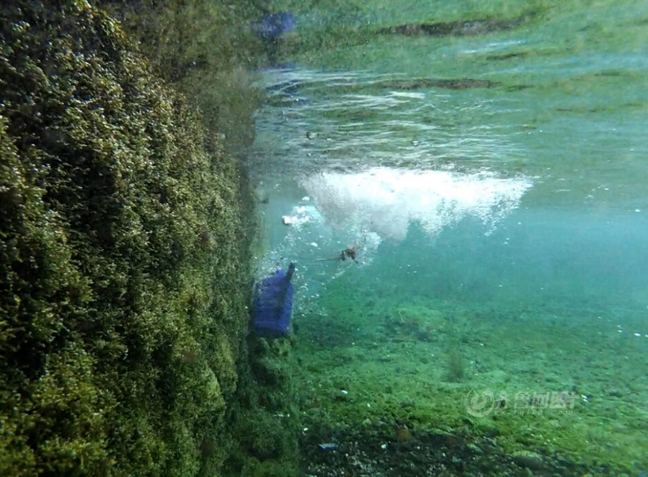 Reporters use underwater camera to record the scene of the flowing springs.(Photo/ iqilu.com)