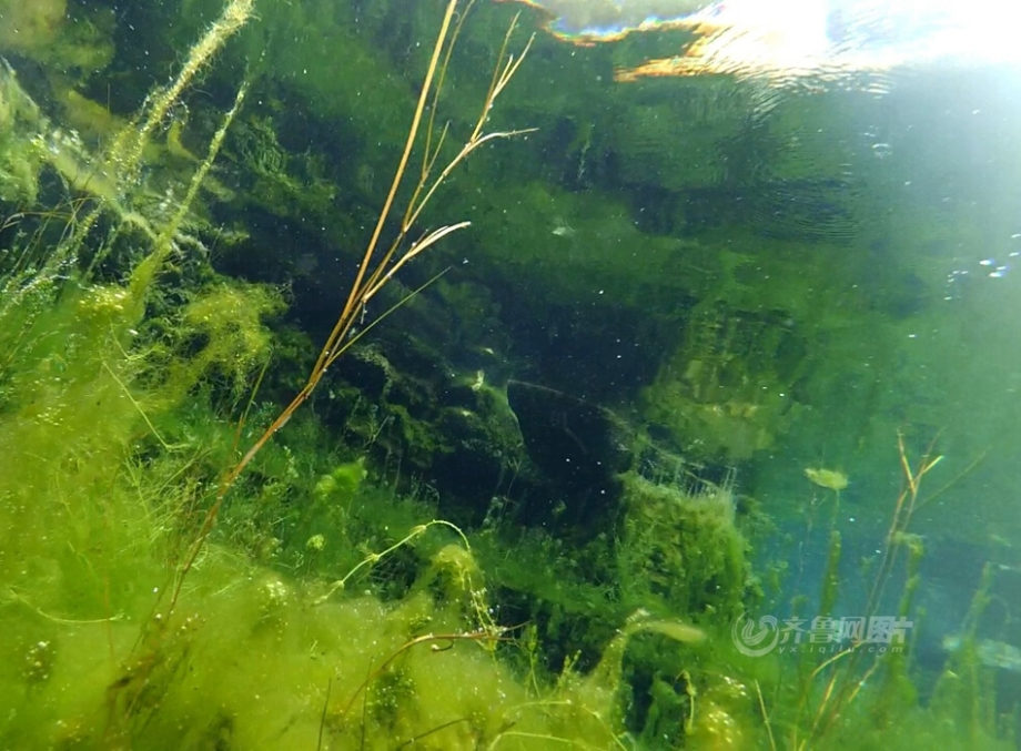 Reporters use underwater camera to record the scene of the flowing springs.(Photo/ iqilu.com)