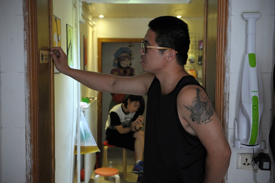 Liu has a guitar tattoo on his arm. He says guitar is his totem. (Qingdao News/Sun Zhiwen, Yu Hong)