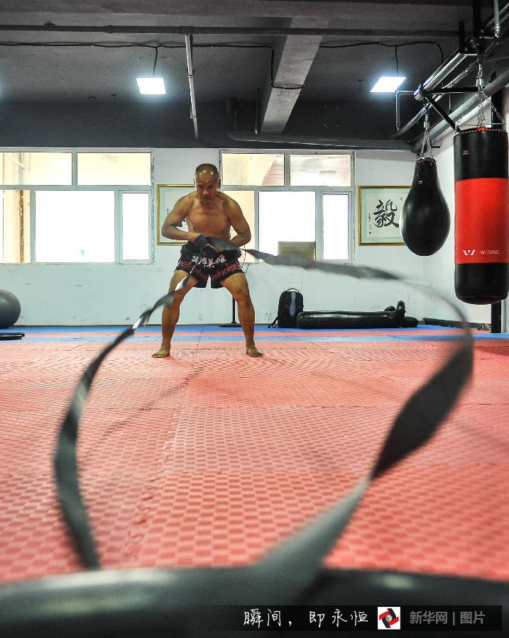 Chen Ming, 61, does boxing exercises. (Photo/ Xinhua)