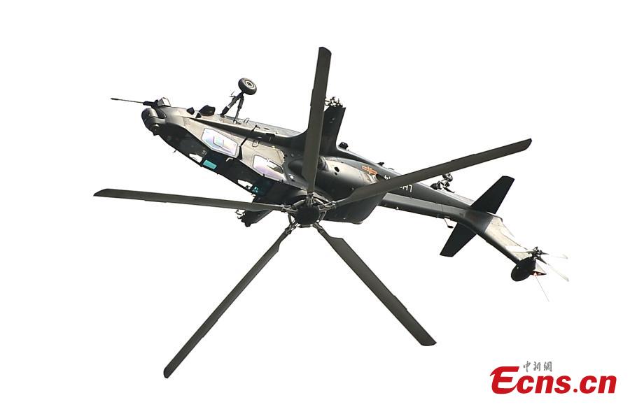 Li Kuiyuan, leader of the "Thunder" aerobatics team, pilots a Z-10 helicopter to present a stunt show at a base in Liaocheng, East China’s Shandong province, July 28, 2015. The "Thunder" aerobatics team is the first helicopter aerobatics team of army aviation in the Chinese People's Liberation Army (PLA). Li has a safe flight record of 7,000 hours, and he is also the first in the country to turn armed helicopter somersaults. The team will stage air shows at the 3rd China (Tianjin) International Helicopter Exposition scheduled in September. (Photo: China News Service/Tong Yu)