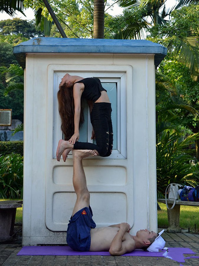 Stunning! Gorgeous girls practice yoga on 2,000-meter-high cliff