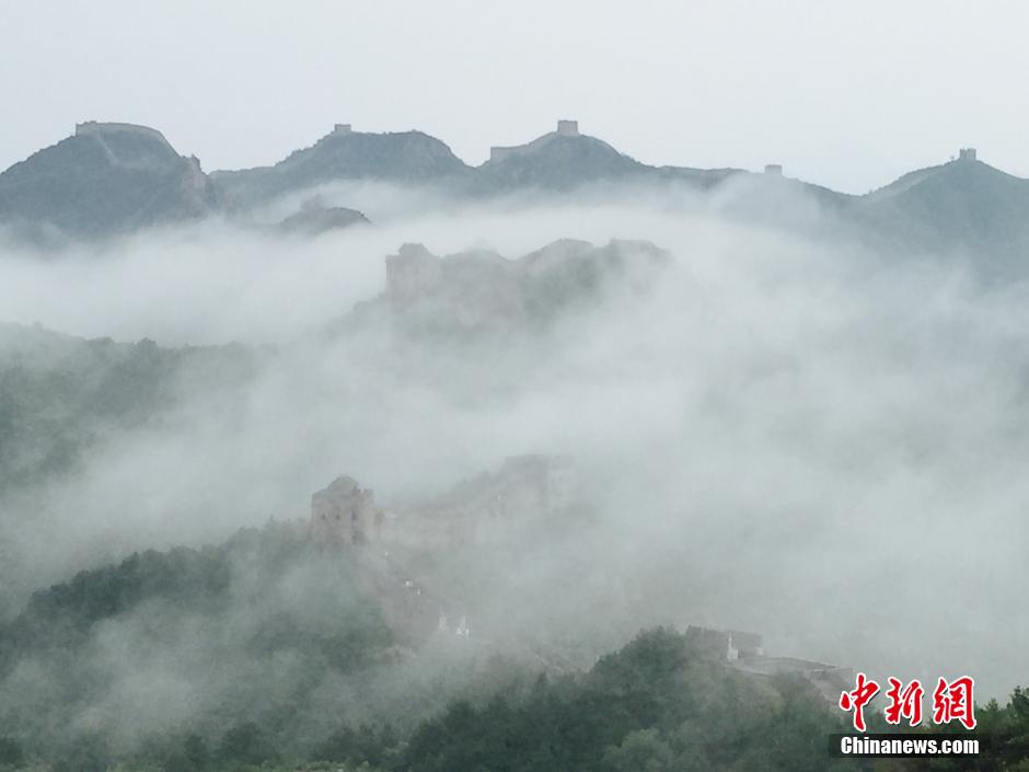 Photo taken on July 28 shows the amazing scenery of Jinshanling Great Wall in clouds after rainstorm. (CNS/Zhou Wanping)