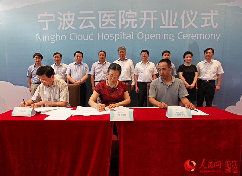 | Ningbo Cloud Hospital signs agreements with other hospitals and community medical institutions. China's first cloud hospital "Ningbo Cloud Hospital" opened offline on July 26, 2015. (people.cn/Zhang Yongtao) |