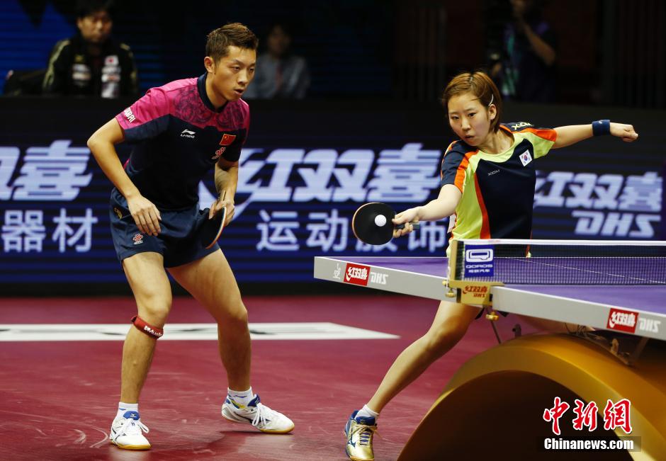 Chinese tennis player Xu Xin and South Korean player Yang Haeun. (Chinanews/Liu Guanguan)