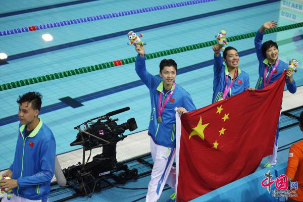 Chinese team wins the championship in the mixed 4X100 relay swimming contest. (Photo/China.com.cn)