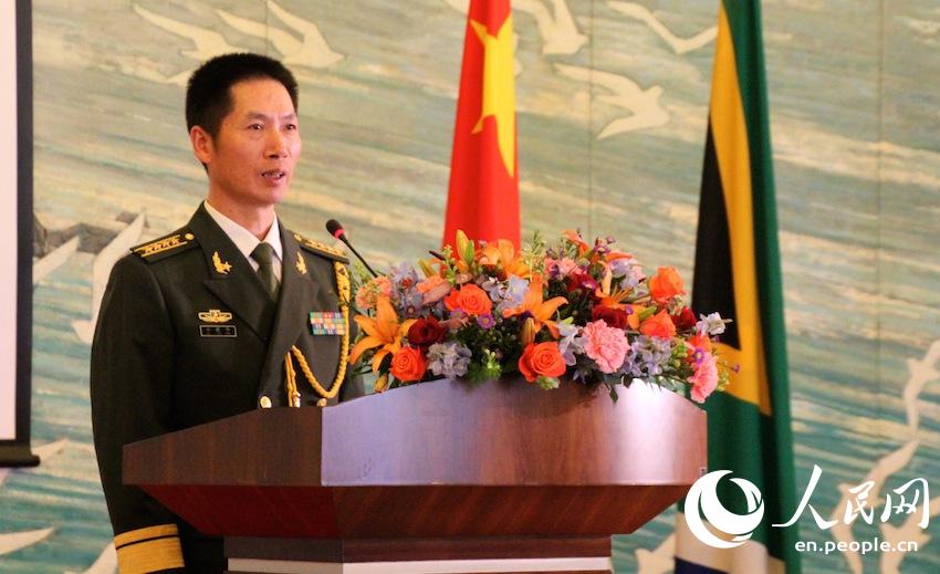 Chinese Defense Attache in South Africa, Snr. Col. Xu Jianwei, gives a welcome speech in the function to celebrate the 88th Aniversary of the Chinese PLA, on July 29th, 2015. (Picture: People’s Daily Online / Zhang Jiexian)