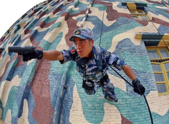 Soldiers of the special operations force of the People’s Liberation Army Navy conduct devil training in water. (Photo/81.cn)