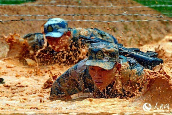 | Soldiers of the special operations force of the People’s Liberation Army Navy conduct devil training in water. (Photo/81.cn) |