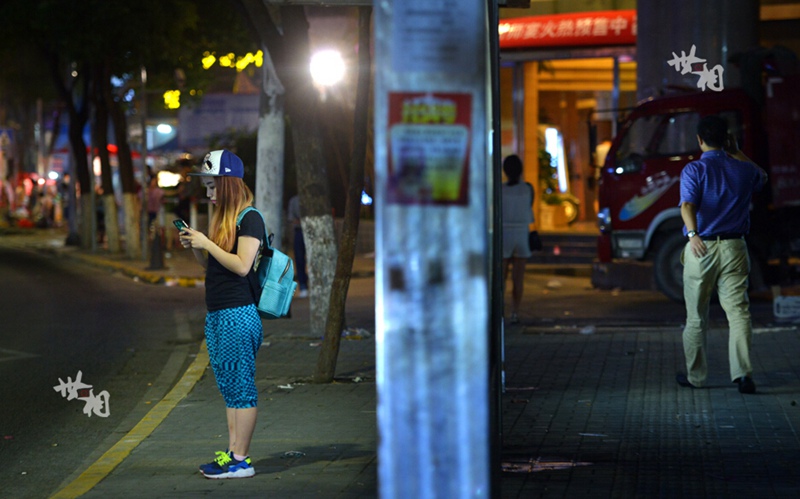 Ma Xiaoyuan calls it for a day at 11 p.m. and waits for a taxi to go home.(China.com.cn/ Liu Youqing)