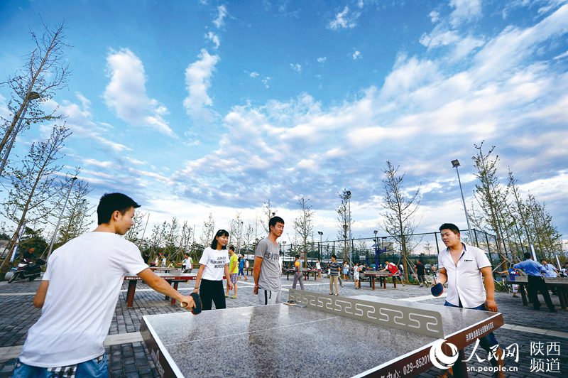 The beach of Fenghe River in Xi’an, northwest China’s Shannxi province, where used to be discarded and dirty, has become a beautiful ecological park through years of environmental engineering. (Photo/people.cn)