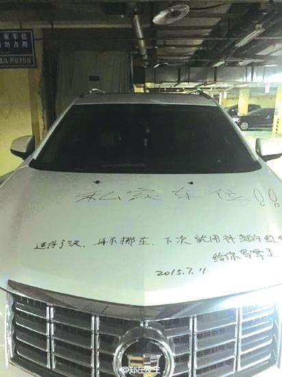 A woman was recently asked to compensate 68,000 yuan for writing on a luxury car. She left a massage on the car with a marker because her private parking spot had been occupied by the car for three days. The owner reported her to the police station and she had paid 30,000 yuan bail before she was released.
