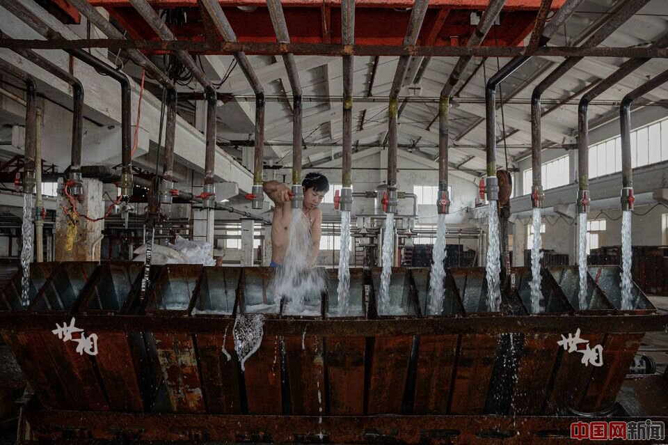 A worker fills the water into the dies. (China.com.cn/Lai Xinlin)