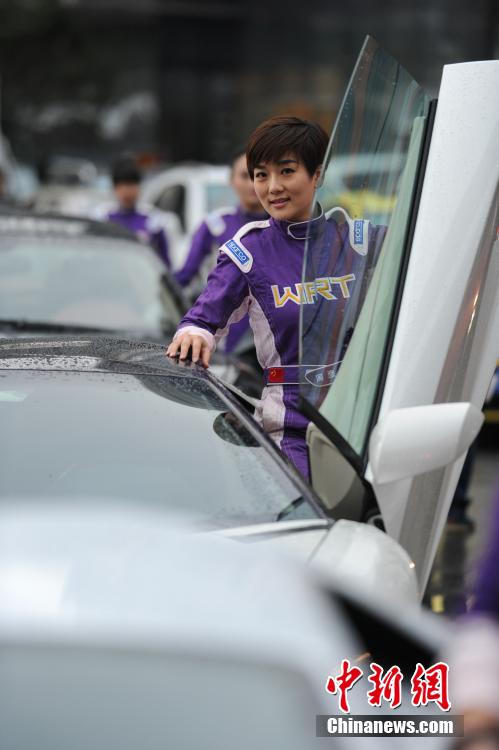 The first women rally team of Guizhou celebrates its first anniversary in the street of Guiyang, southwest China's Guizhou province on July 29, 2015. The rally team currently is the only team totally composed by female riders in China. 12 riders and their cars attracted much attention in the street. (CNS/He Junyi)