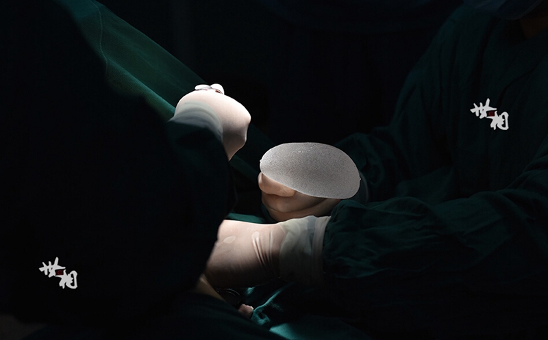The doctor implants sterilized prosthesis into her breasts. (China.com.cn/ Jiang Yu)