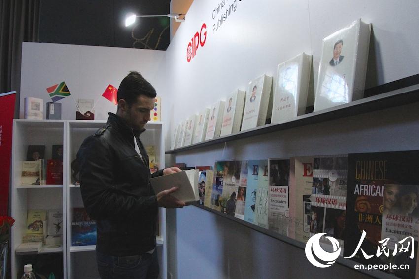 A South African reader is reading Xi Jinping: The Governance of China at the stand of China Inter national Publishing Group at SA Book Fair on July 31st, 2015. (Picture: People’s Daily Online / Zhang Jiexian)