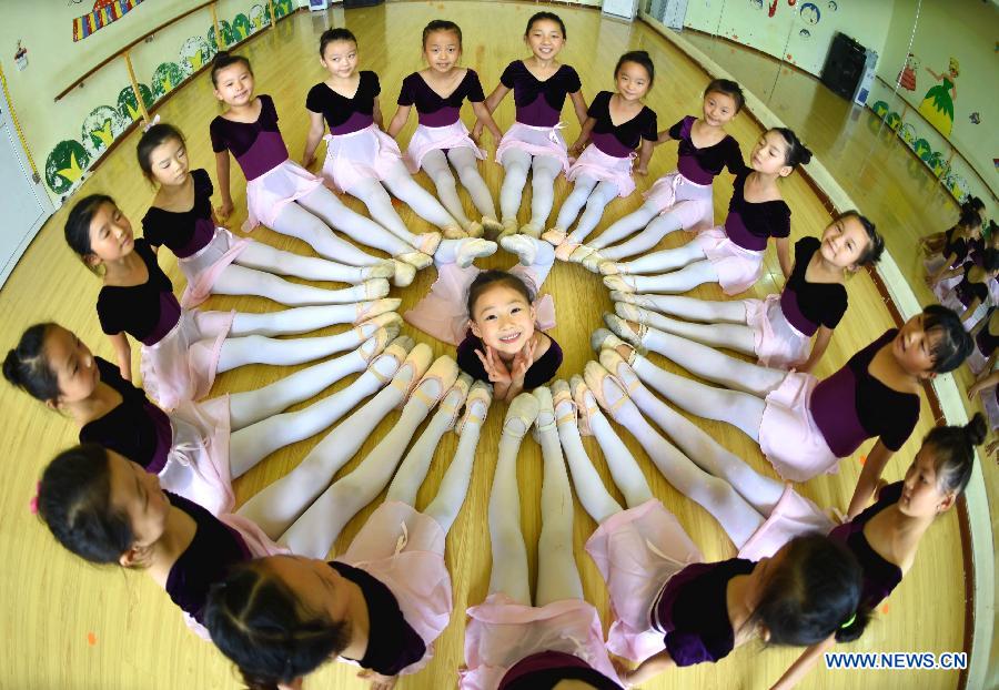 | Children practice basic skills in a dance class in Hongning Dancing School in Bozhou, east China's Anhui Province, Aug. 4, 2015. Many children here chose to take dancing class to spend their summer vacation. (Xinhua/Liu Qinli) |