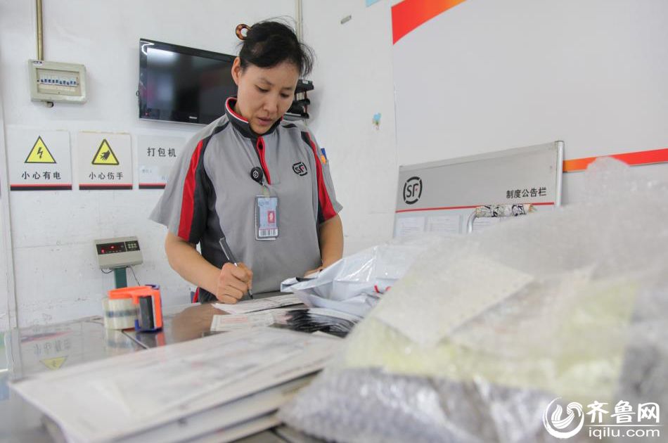 Song carefully checks the information on the waybill. (Photo/iqilu.com)