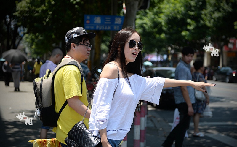 Ye Xin and her agent wait for taxi in street in Shanghai. (China. com.cn/ Lai Xinlin)