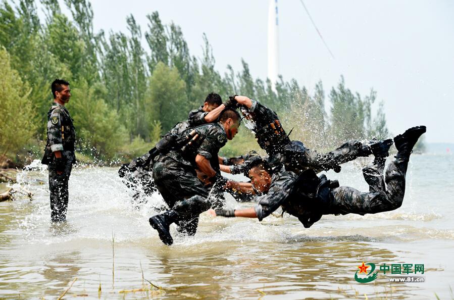 A group of photos show the PLA's devil fighting training in water. (Photo/81.cn)