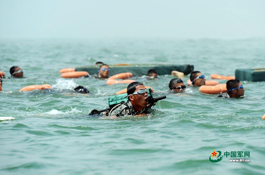 A group of photos show the PLA's devil fighting training in water. (Photo/81.cn)