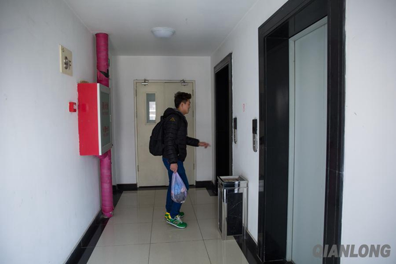 After work, Zhao Yichao leaves the client’s home carrying the kitchen waste. (Qianlong/ Yu Ying)