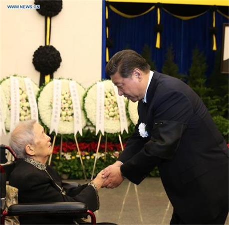 President Xi Jinping, Premier Li Keqiang, and senior leaders Zhang Dejiang, Yu Zhengsheng, Liu Yunshan, Wang Qishan and Zhang Gaoli, attended the funeral at Babaoshan Revolutionary Cemetery in west Beijing.