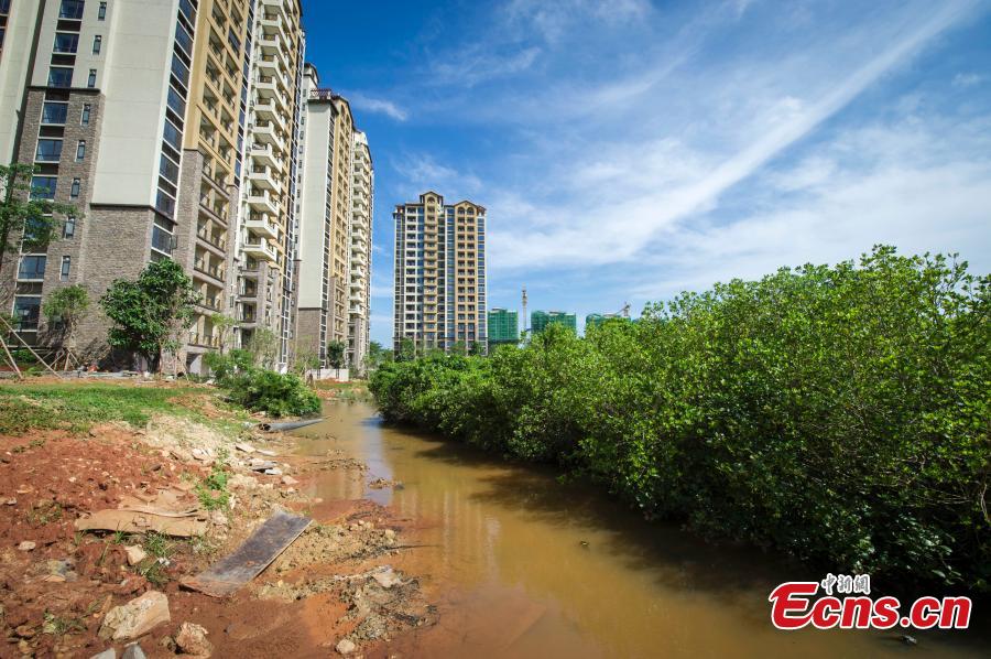 New residential buildings circle a protected mangrove wetland in Chengmai county, South China’s Hainan province, Aug 5, 2015.