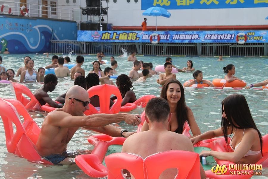 Foreign ladies wearing bikini "do as Chengdu people do" - participating in a mahjong competition held in a water park in Chengdu on Aug. 1, 2015.