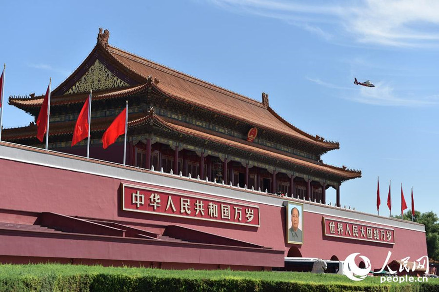 The newly-painted Tiananmen Gatetower on August 4, 2015. (people.cn/Weng Qifan)