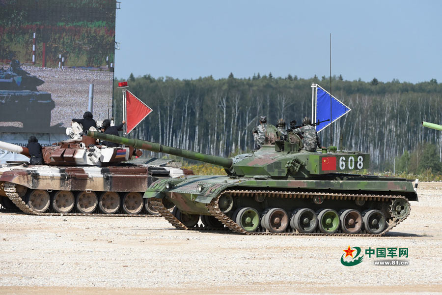 The individual race of the "Tank biathlon" contest kicked off on Aug. 3 at the Alabino training range in Moscow Region, which was held in the course of the Russian International Army Games 2015. The type 96A tanks of the Chinese People's Liberation Army team participated in the race. (Photo/www.81.cn)