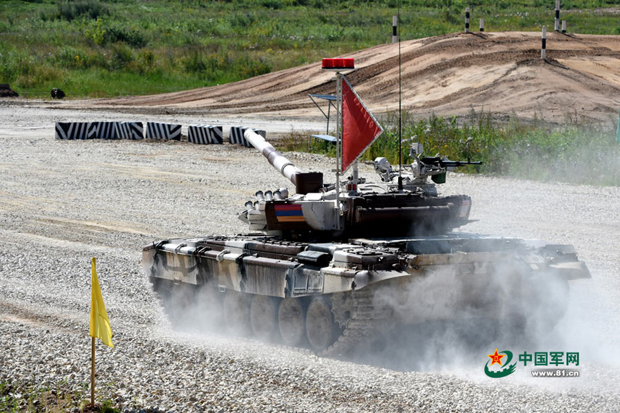 The individual race of the "Tank biathlon" contest kicked off on Aug. 3 at the Alabino training range in Moscow Region, which was held in the course of the Russian International Army Games 2015. The type 96A tanks of the Chinese People's Liberation Army team participated in the race. (Photo/www.81.cn)