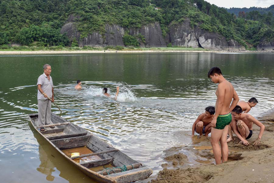 Liang Yunquan, 66, is a ferryman who has rescued 22 people in the Duliu river in the past 47 years. He has also persuaded many people who wanted kill themselves by jumping into the river to abandon the idea. Liang became a ferryman when he was 19 years old.