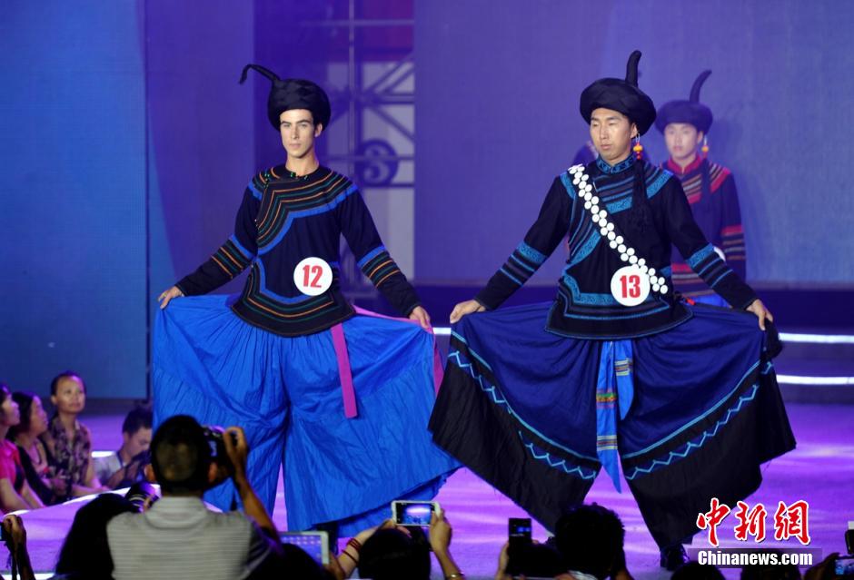 Models show beautiful costumes of the Yi nationality on T stage. (Photo by China News Agency/ Liu Zhongjun)
