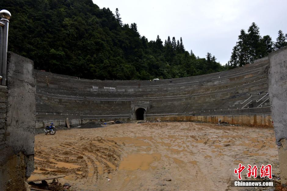 | An bullring, covering an area of more than 20,000 square meters, is being built in Rongjiang county, southwest China's Guizhou province on August 7th, 2015. It is the largest bullring for 72 Dong stockaded villages and is built to carry forward traditional Dong bullfight culture. The bullring is said to be able to accommodate 50,000 people and will be put into use this September. (Photo/CNS) |