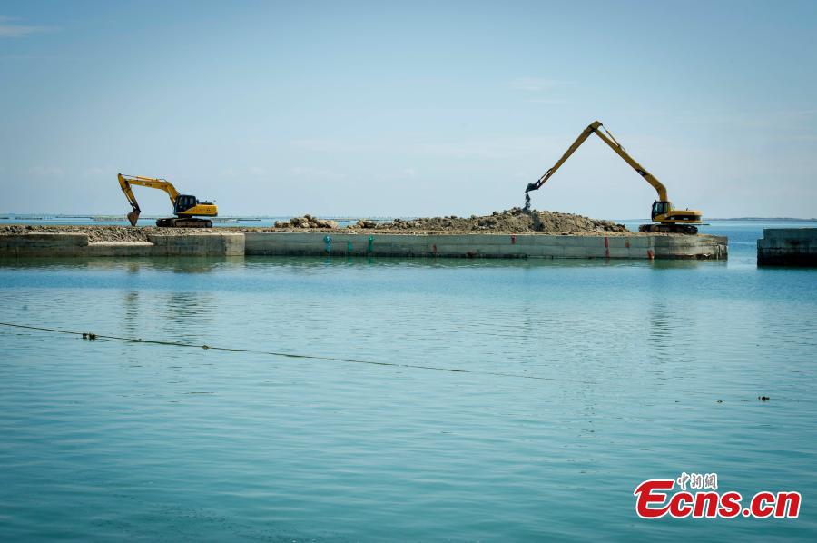 Illegally built structures, including a wharf, are popping up on a stretch of coast in Lingao county, South China’s Hainan province, Aug 6, 2015. A company has reclaimed land from the sea and built structures without acquiring necessary approvals. The company was fined more than two million yuan ($320,000) in 2011 but has since built more facilities, incurring another fine of 2.4 million yuan. (Photo: China News Service/Luo Yunfei)