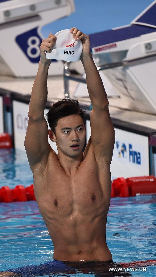 Ning,22, who had been the first Asian swimming into 48 seconds in theevent, broke the tight control of the event by Western swimmers and became the first Chinese to win the event in the world top arena.