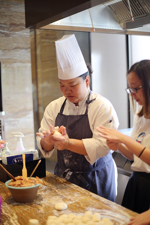 On the fifth floor, there is an open kitchen. I learned to make Chinese traditional snacks with Chief Sarah.