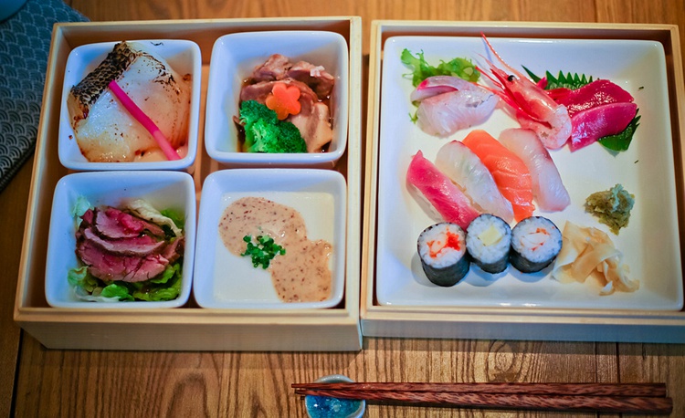 88 Sushi Bento Bar, located in the steel-brushed oval above Andaz Lounge, is a Japanese cuisine serving high-end sushi and sashimi restaurant.