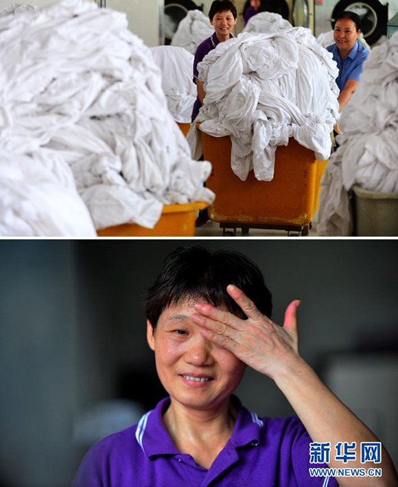 Li Guie, works in a washing workshop in a company under the passenger transporting section in Fuzhou, Fujian.