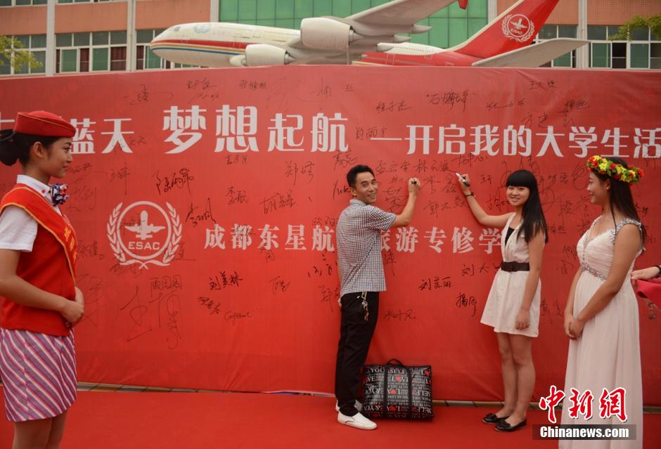A red carpet ceremony is held in a college in Chengdu, southwest China's Sichuan province to welcome the freshmen on Aug. 5 to 6. "To hold such a ceremony is to give the college freshmen confidence and encouragement. We hope they will treasure the university life," said the president of the college. (CNS/Zhong Xin)
